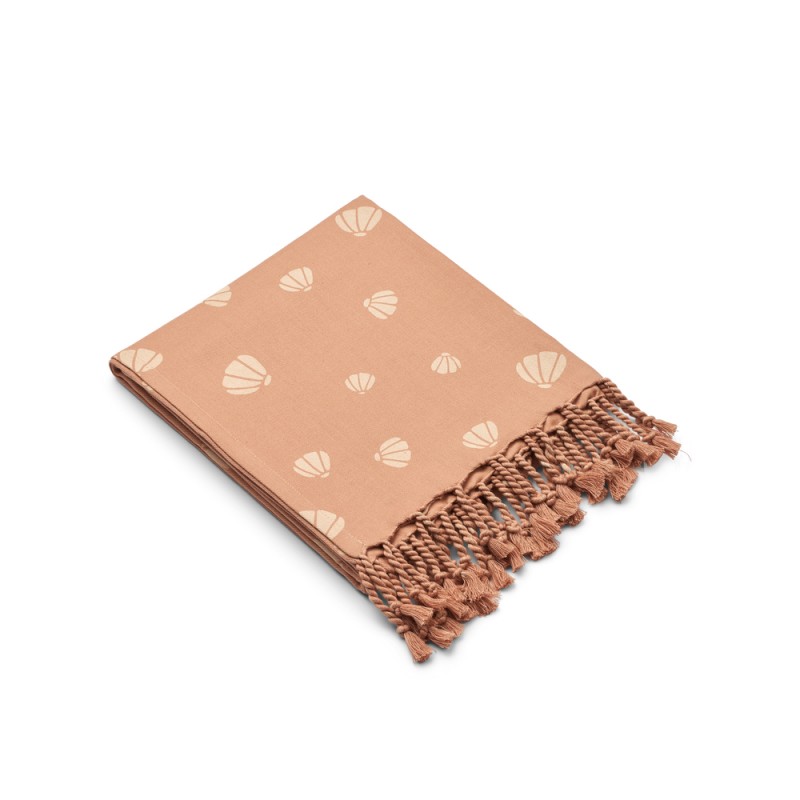 Douce et colorée, la serviette de plage en coton de la marque Liewood est une alternative pratique aux serviettes éponge plus épaisses.