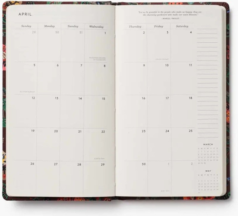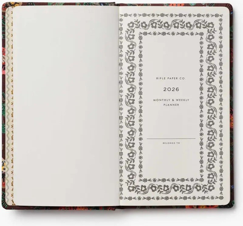 Cet agenda de la marque Rifle Paper marie beauté florale et fonctionnalité.