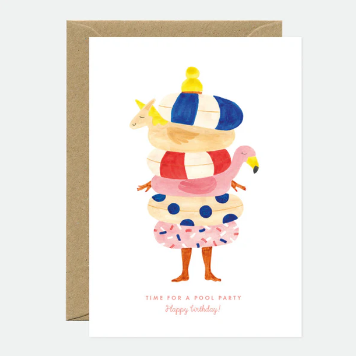 La carte Pool Party évoque l’été et la bonne humeur avec son illustration rafraîchissante inspirée des vacances au bord de la piscine. Parfaite pour souhaiter un anniversaire ensoleillé et chaleureux à vos proches.