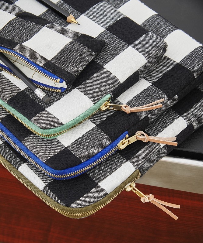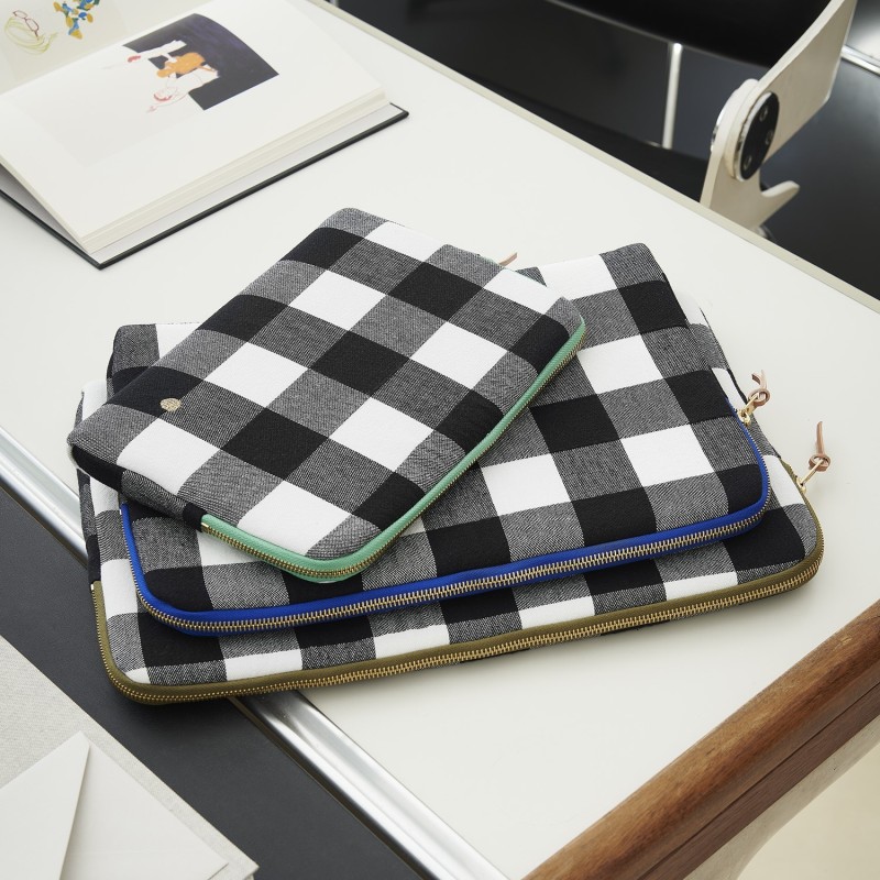 Protégez votre ordinateur portable avec cette pochette en coton bio aux lignes douces et arrondies.