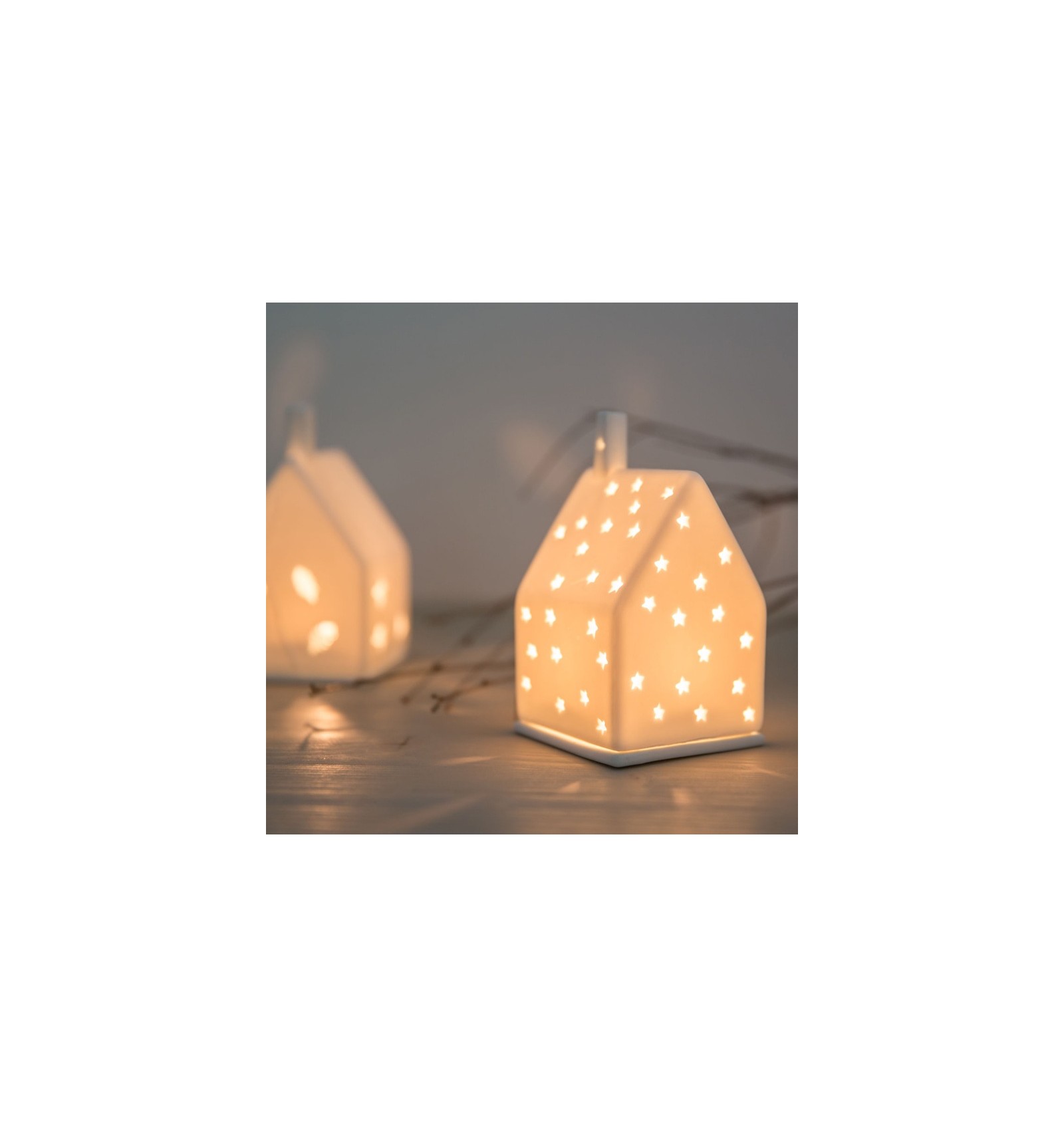 Photophore en forme de maison, en porcelaine non-émaillée pour illuminer votre intérieur avec poésie.