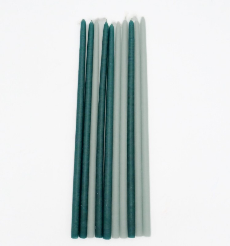 Ce coffret Maison Pechavy contient 10 bougies fines : 5 céladon, 5 bleu paon