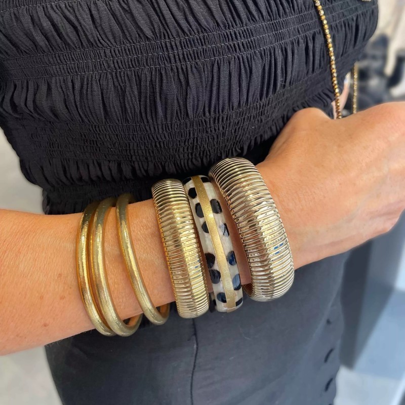 Bracelet en corne véritable, modèle léopard et décoré de feuilles d'or.