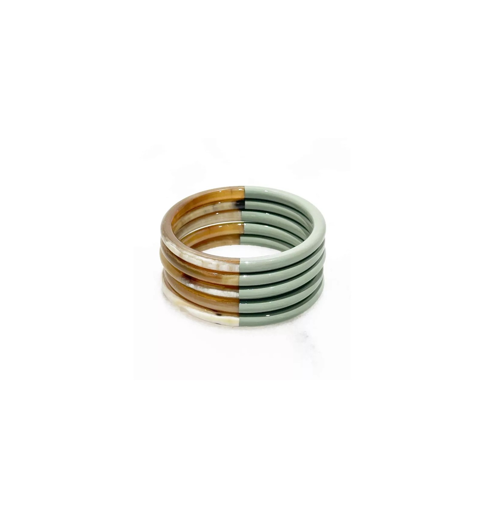 Les bracelets sont façonnés à la main par des artisans à partir de corne de buffle. Chaque bracelet est une pièce unique. Ce produit étant naturel, les teintes sont variables d'une pièce à l'autre.