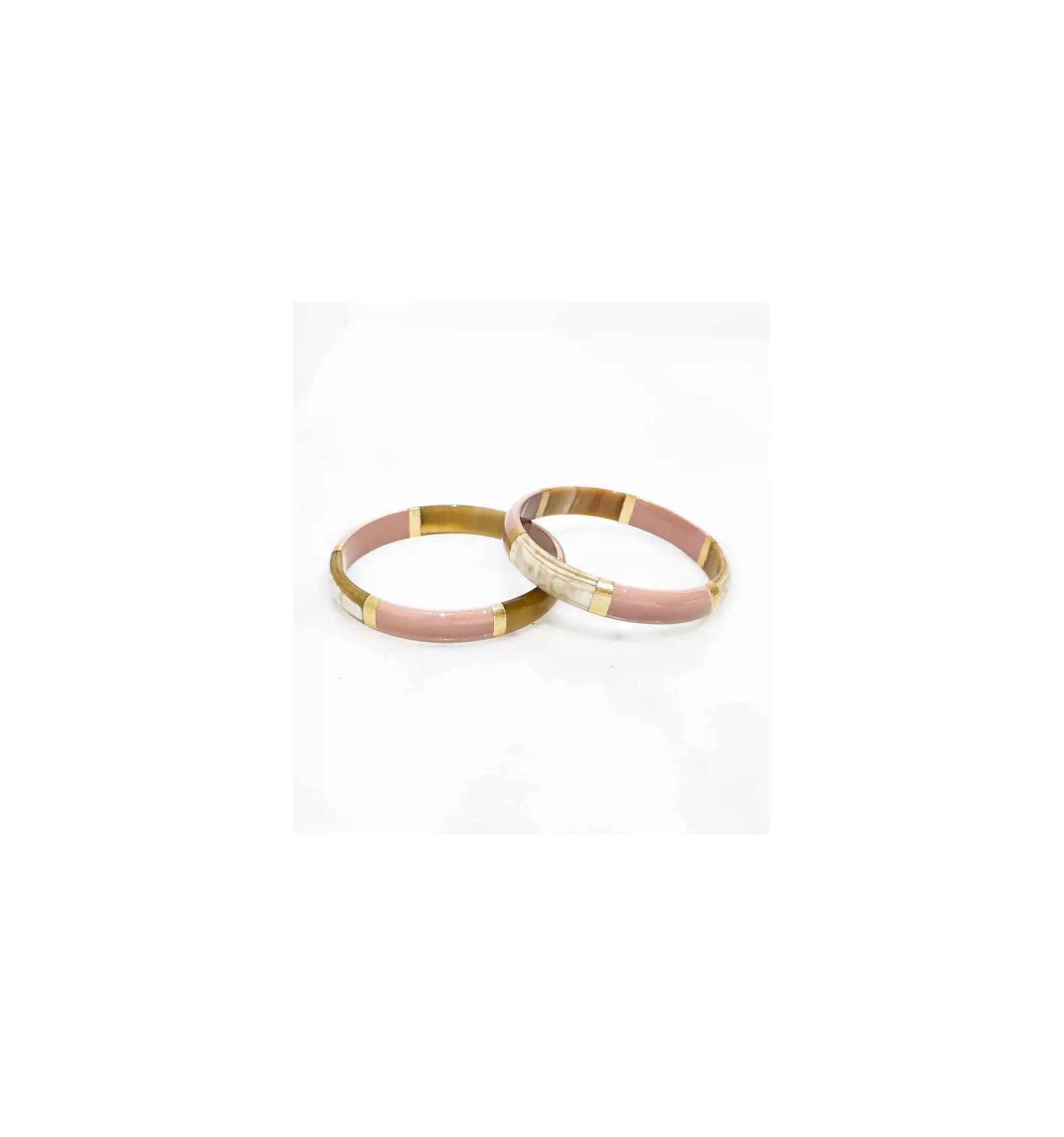 Les bracelets sont façonnés à la main par des artisans à partir de corne de buffle. Chaque bracelet est une pièce unique. Ce produit étant naturel, les teintes sont variables d'une pièce à l'autre.
