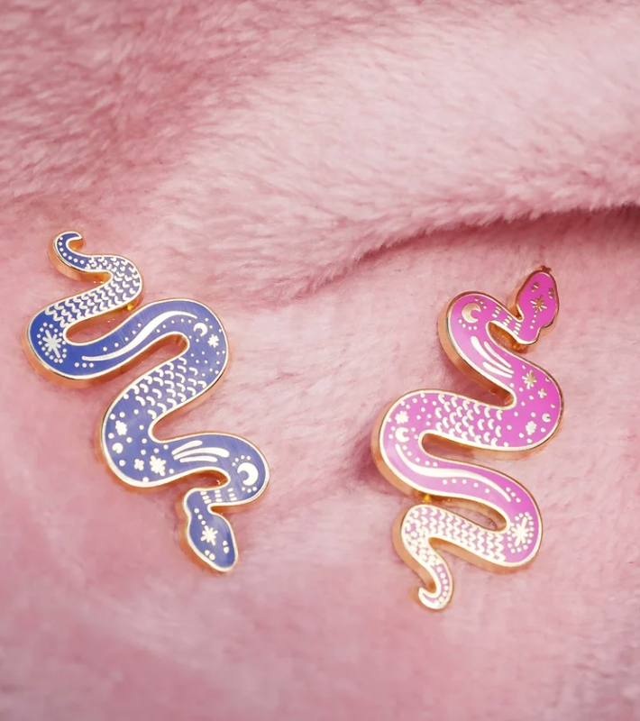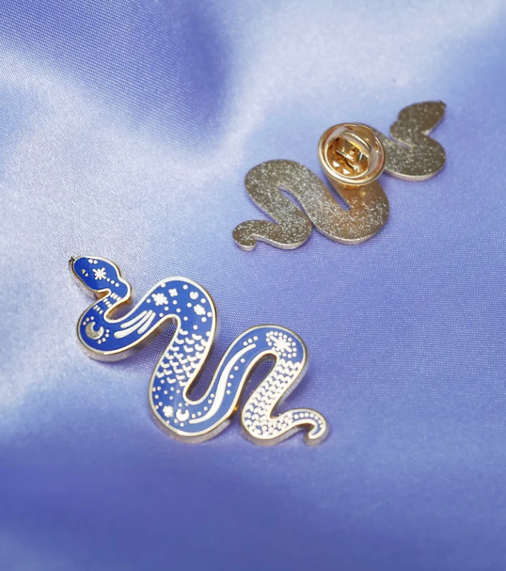 Ajoutez une touche de mystère à votre tenue avec ce pin serpent aux nuances envoûtantes de bleu.