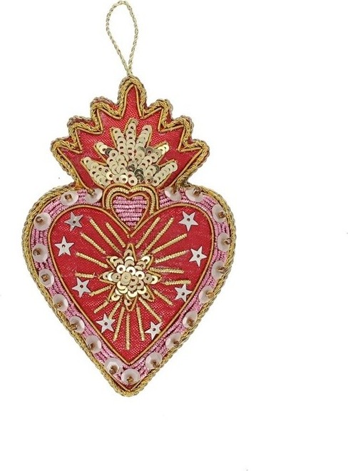 Fabriquée artisanalement en Inde, chaque suspension est réalisée en tissu et minutieusement brodée de fils dorés scintillants. Son rembourrage en polyester lui confère un joli volume et un effet en relief, parfait pour apporter du caractère à votre sapin de Noël, une poignée de porte, ou même une décoration murale originale.