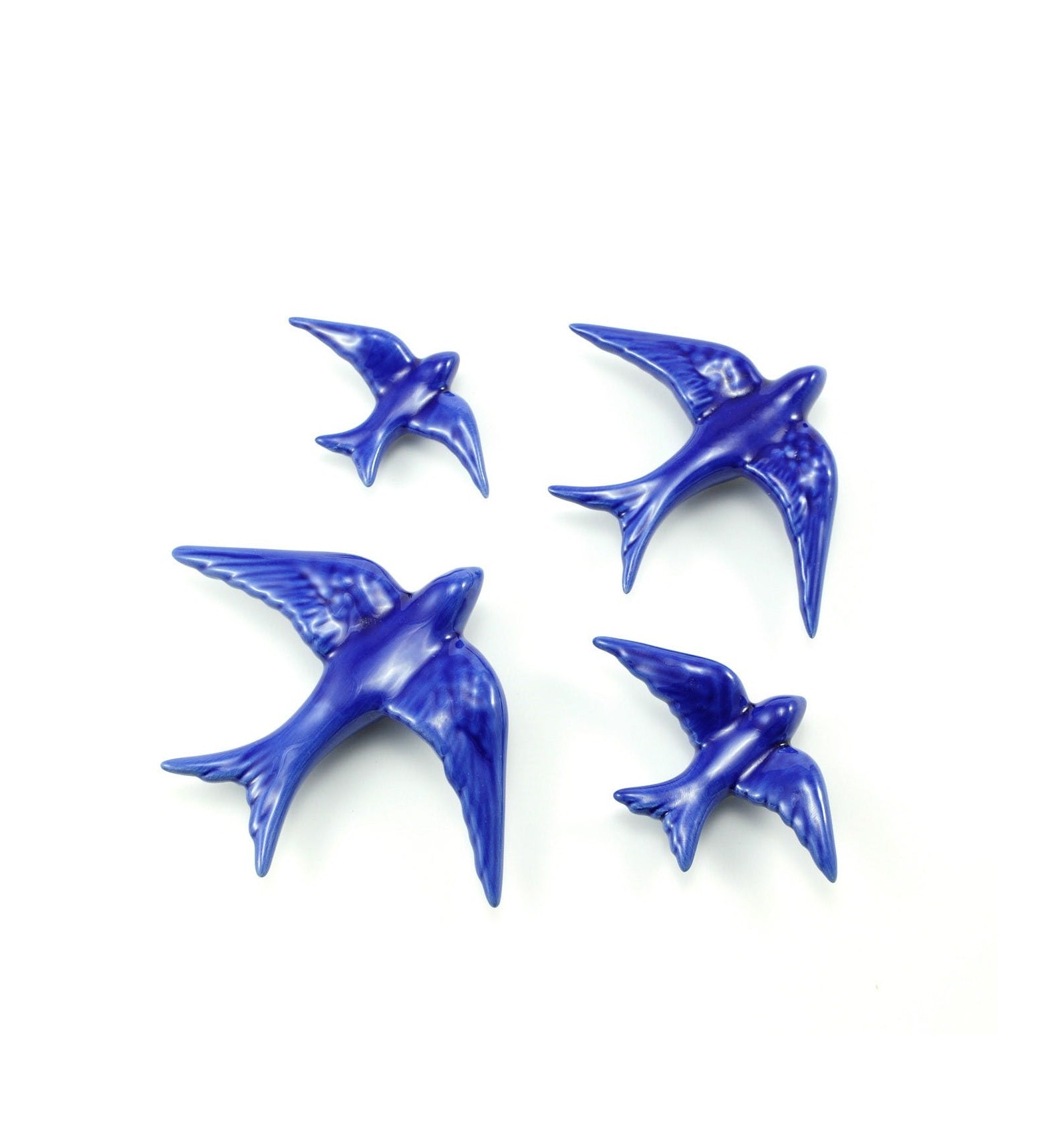 Hirondelles en céramique émaillée fabriquées traditionnellement au Portugal.