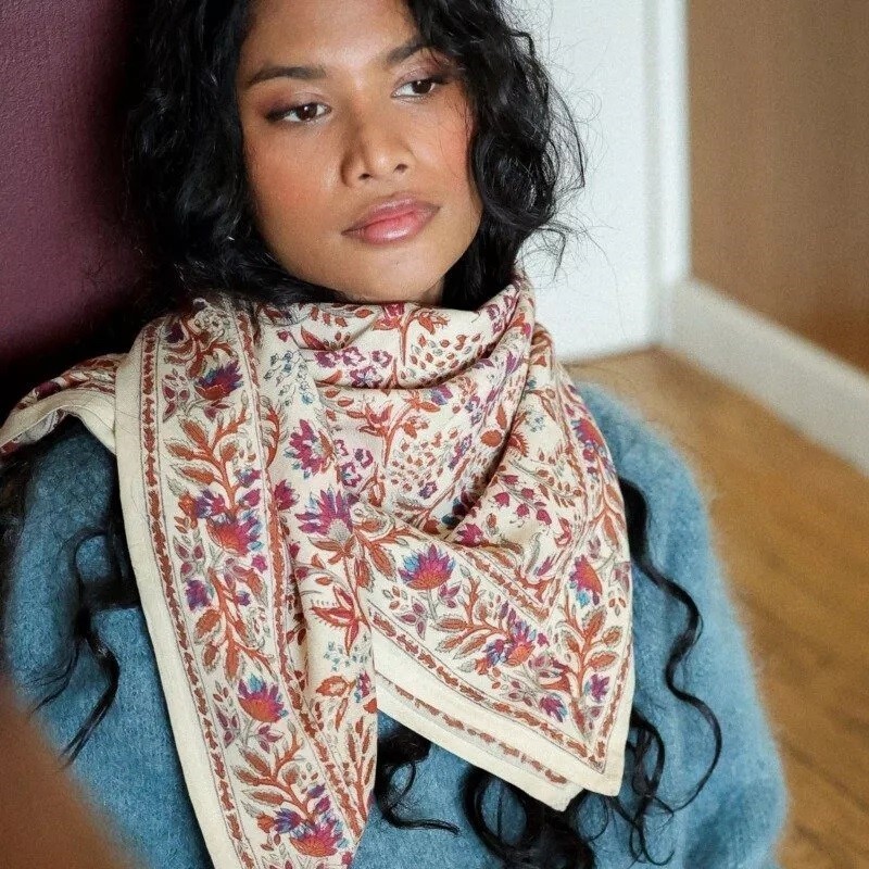 Foulard en coton tout doux imprimé Block-print*