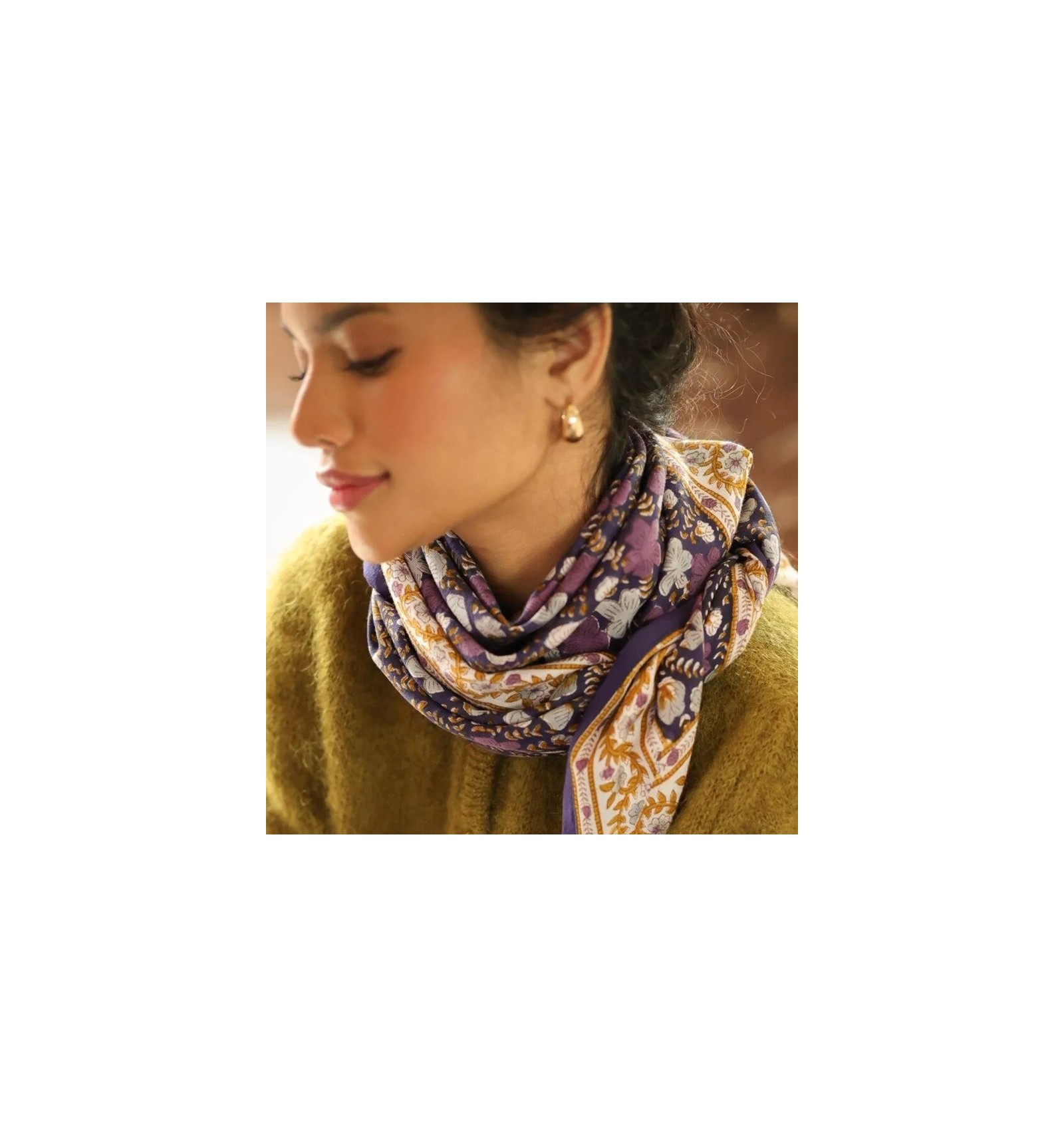 Certains coloris vifs peuvent parfois déteindre par frottement sur d’autres matières, ceci est lié à la technique d’impression artisanale utilisée pour nos foulards. Nous vous conseillons de laver séparément votre foulard avant de le porter pour la première fois.