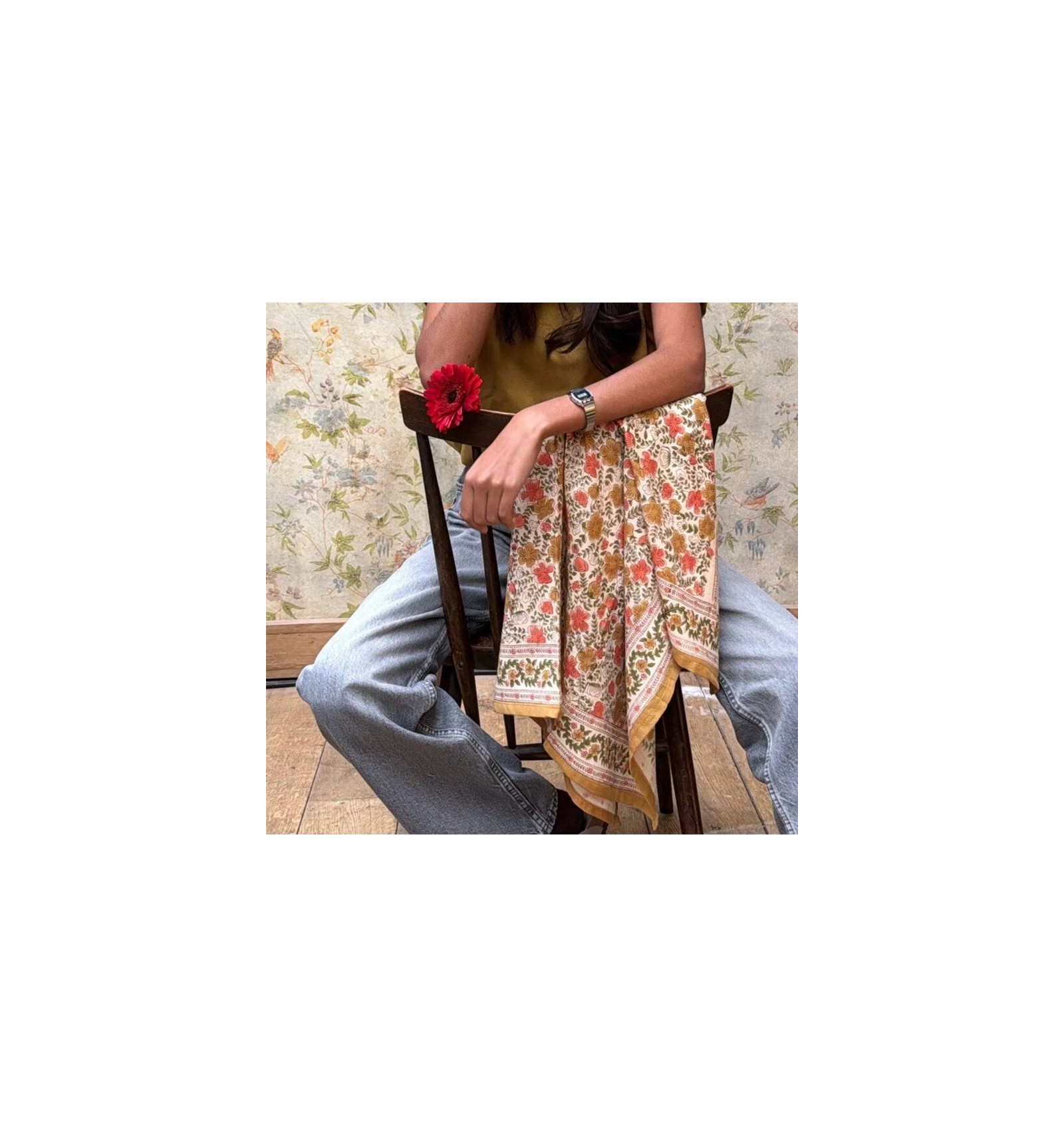 * Le block-print est un procédé traditionnel indien. Chaque tampon destiné à imprimer le motif est gravé dans le bois puis imprégné de teinture pour être appliqué manuellement.