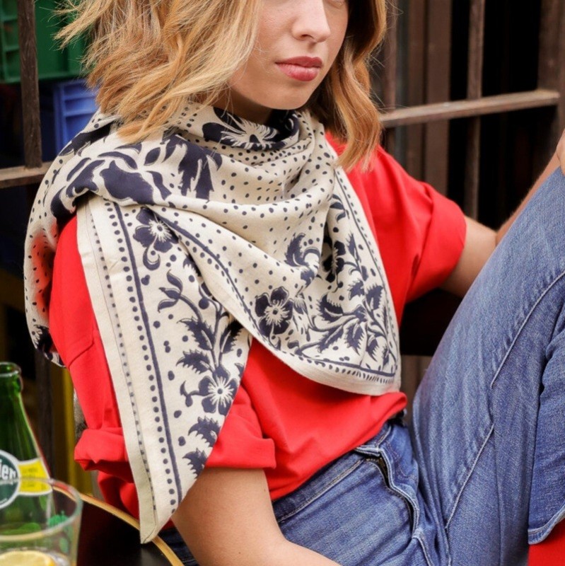 Foulard en coton tout doux imprimé Block-print*