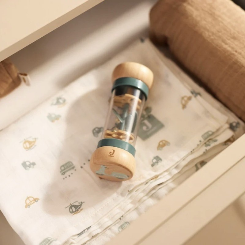 Ce joli bâton de pluie Jollein éveille les sens de bébé tout en douceur. Facile à manipuler, il produit un doux son de pluie qui apaise et stimule la curiosité. Parfait pour l’éveil sensoriel dès 6 mois.