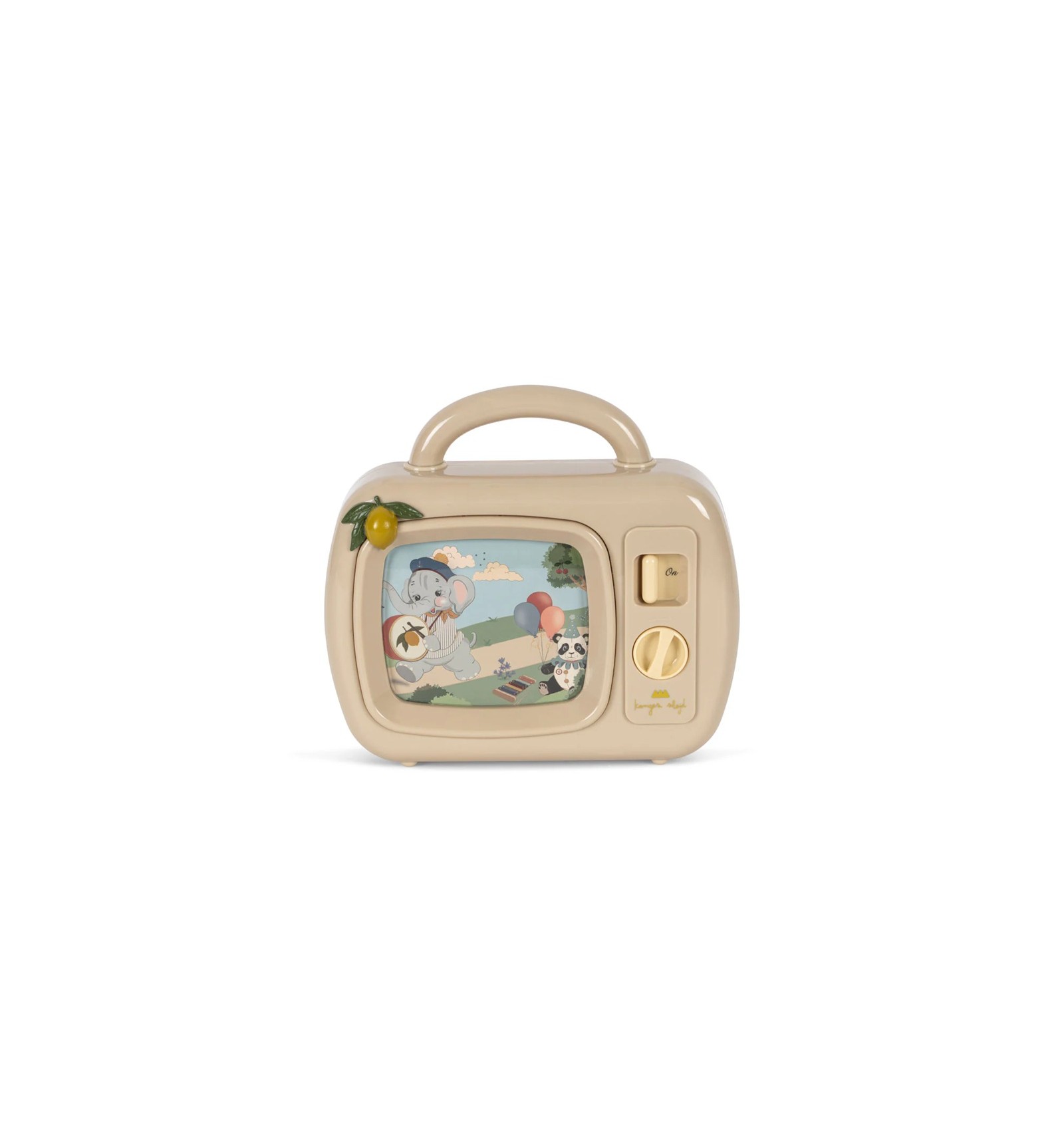 Un adorable petit jouet musical pour les plus jeunes. Activez l’écran mobile en tournant le bouton dans le sens inverse des aiguilles d’une montre. Les images à l’écran suivront les sons apaisants.