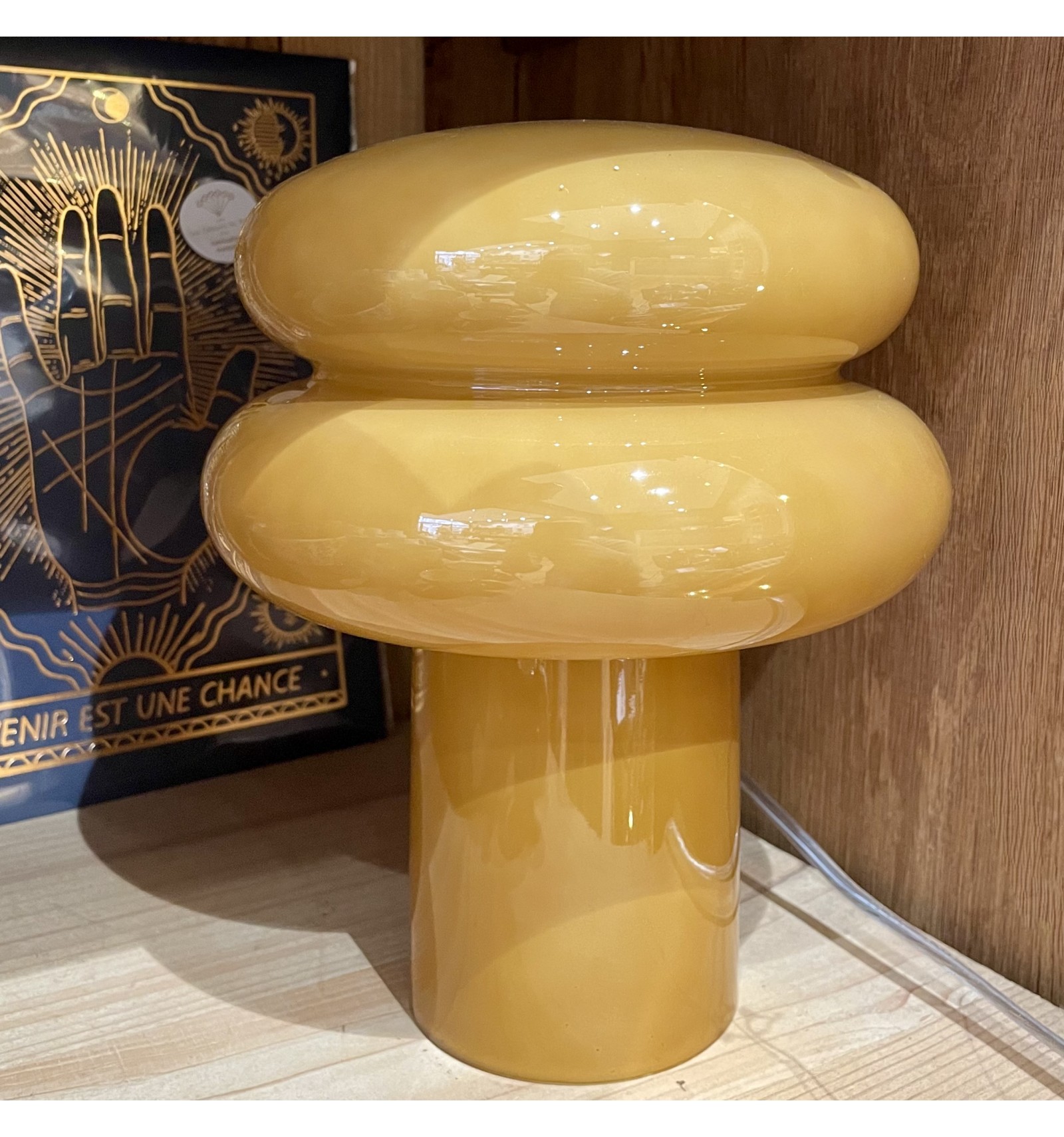 Cette magnifique lampe rose en verre diffuse une douce et chaleureuse lumière.
