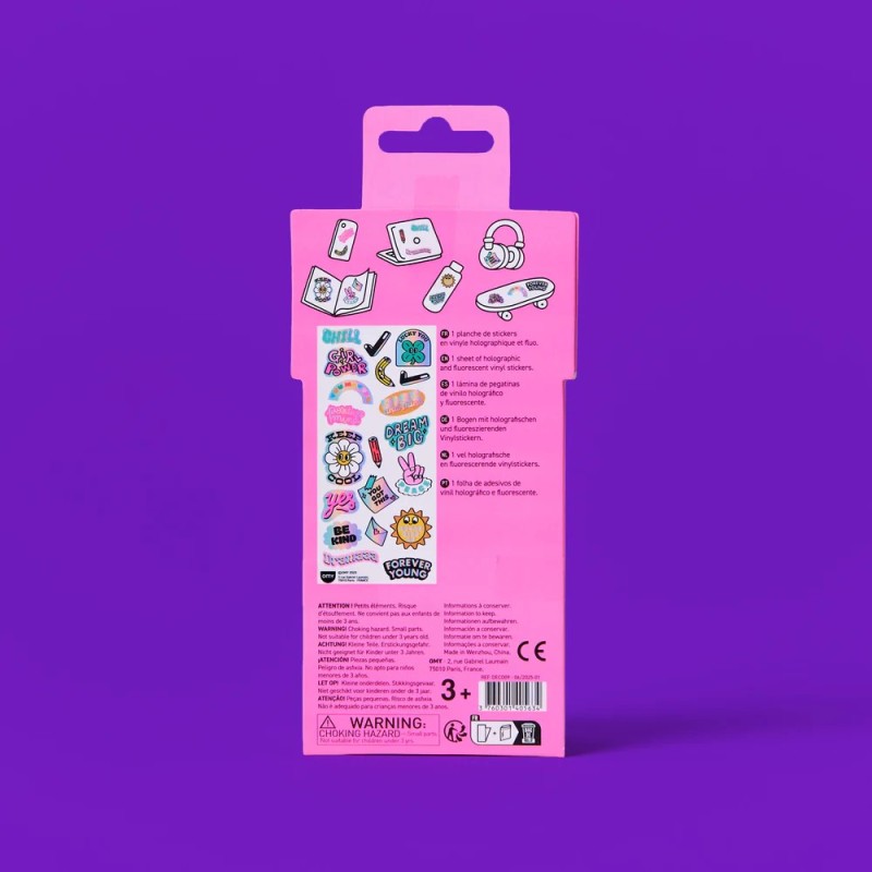 Diffusez des ondes positives avec les Fabulous Stickers Iconic Messages 💬 Une planche de stickers fun, fluorescents et holographiques remplie de mots inspirants et symboles colorés pour personnaliser vos objets avec bonne humeur.