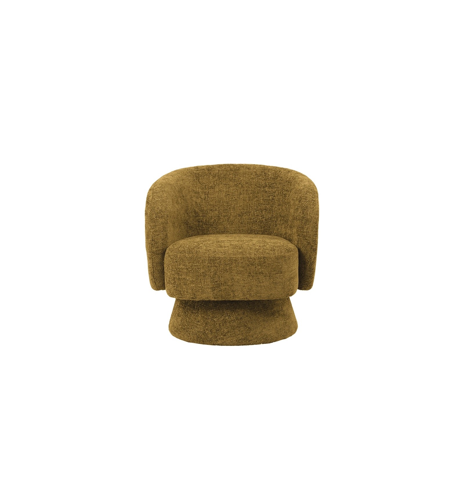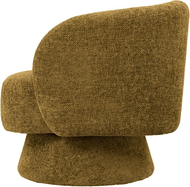 Un fauteuil au design contemporain et aux lignes enveloppantes, habillé d'une douce chenille coloris kaki.
