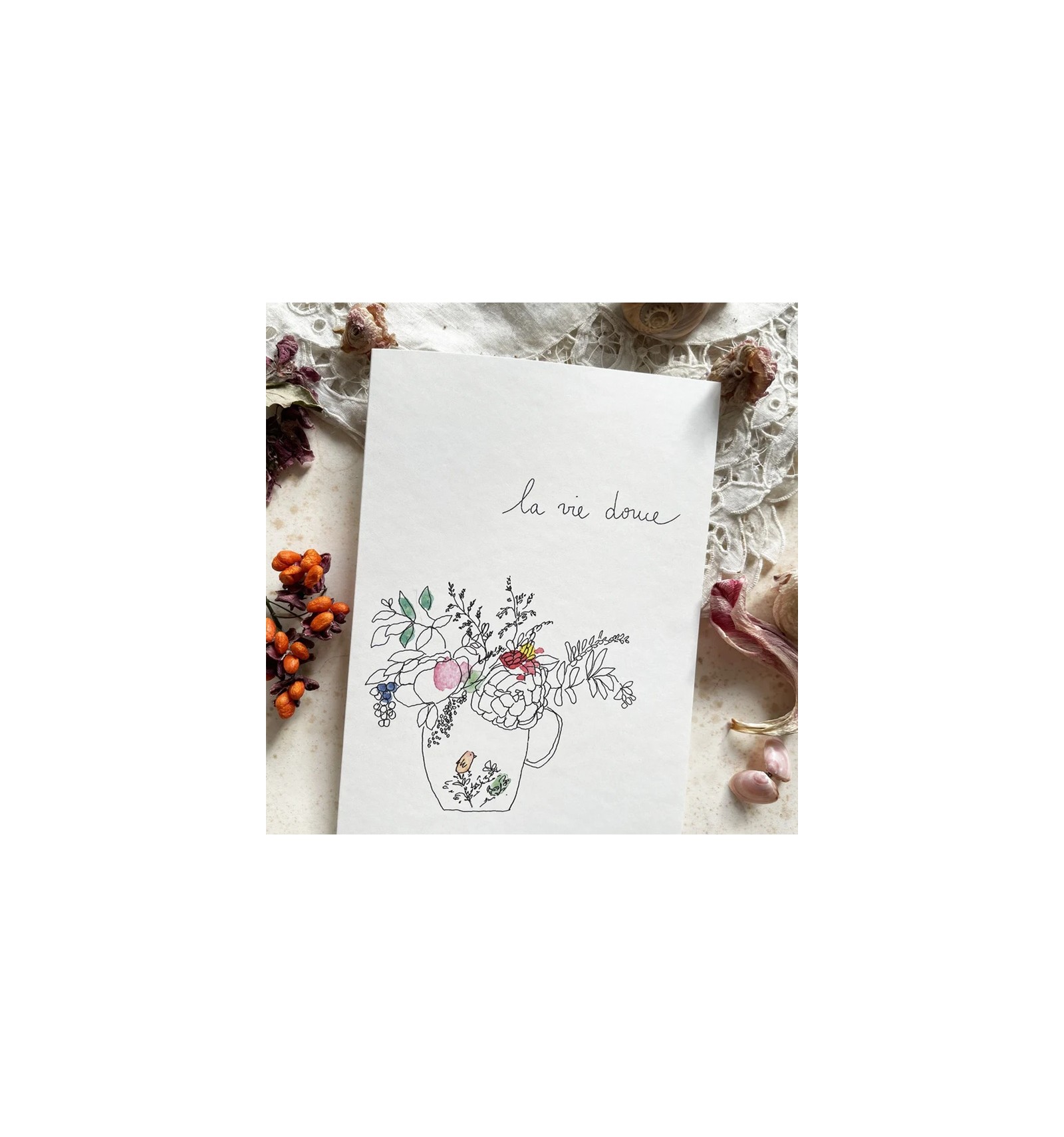 Carte double illustrée avec son enveloppe en papier kraft.