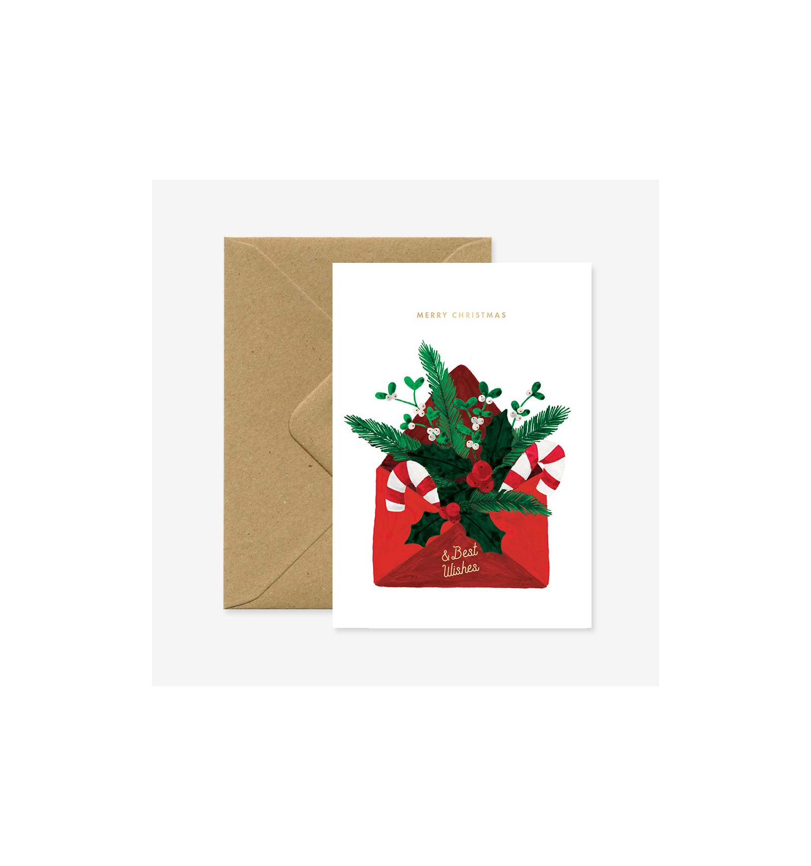Une carte double "Merry Christmas ans Best Wishes" avec son enveloppe kraft imaginée par All the ways to say!
