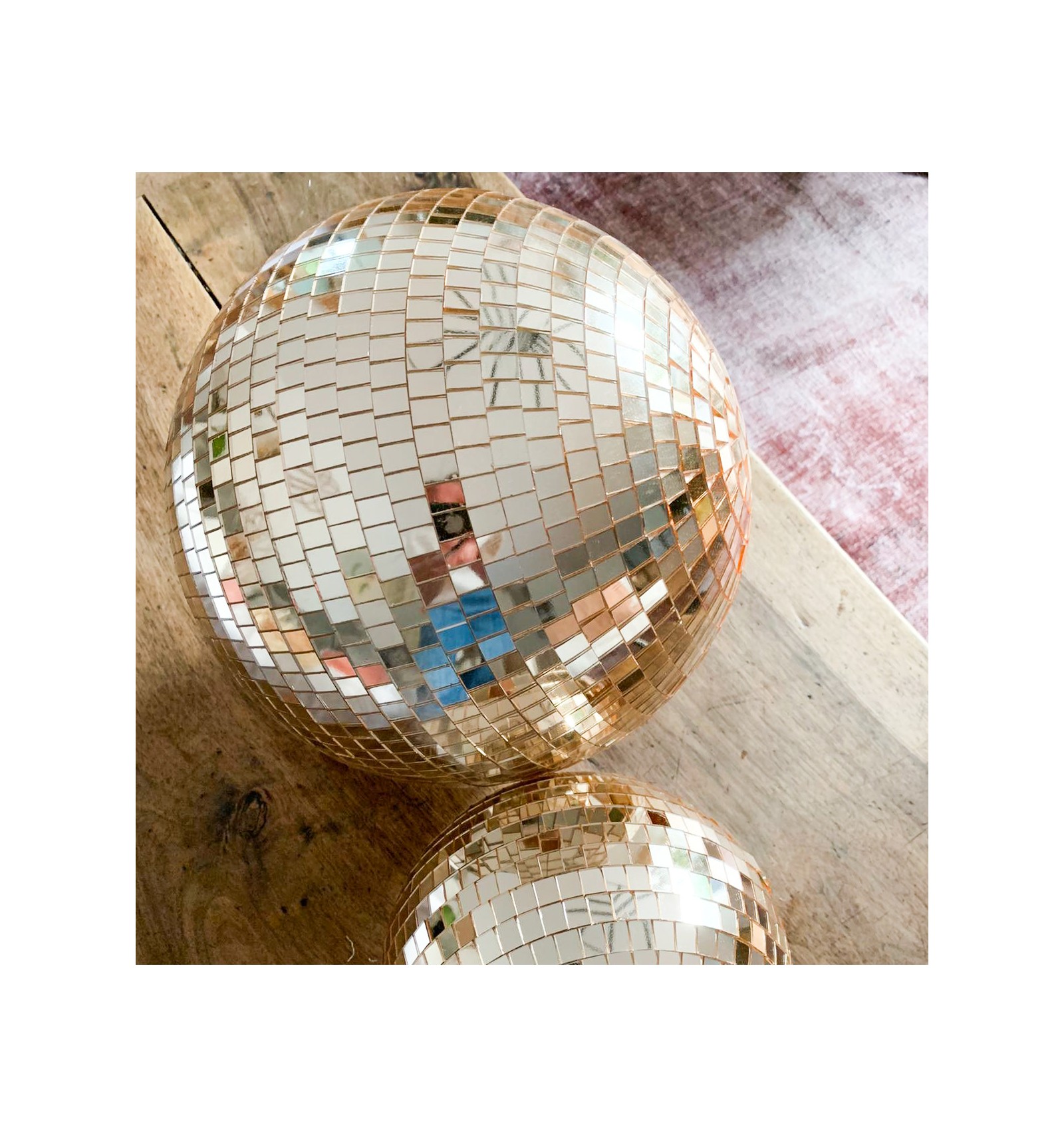 | Détails | Certaines facettes peuvent arriver légèrement ébréchées ou décollées. Ce qui n'enlève en rien au charme de la boule à facettes. |