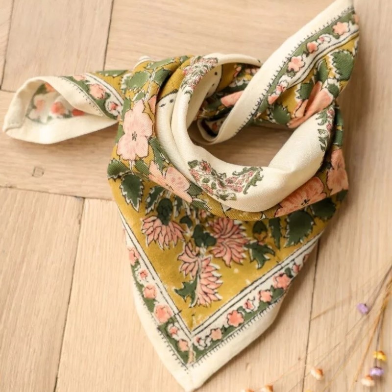 Certains coloris vifs peuvent parfois déteindre par frottement sur d’autres matières, ceci est lié à la technique d’impression artisanale utilisée. Nous vous conseillons de laver séparément votre foulard avant de le porter pour la premiere fois.