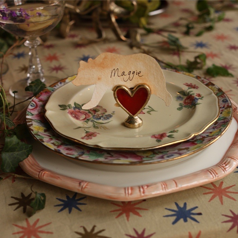 Fabriqué à la main en laiton recyclé, ce petit support délicat et orné d’un coeur rouge mettra en valeur vos cartes, photos, noms de table ou petits souvenirs.