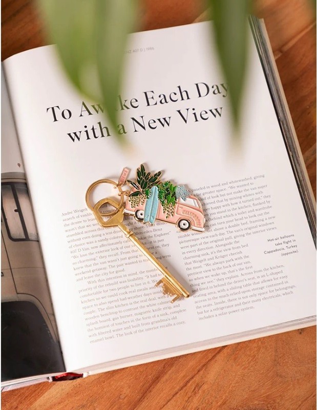 Porte-clés en métal émaillé Surf Van imaginé par la marque française All the ways to say.