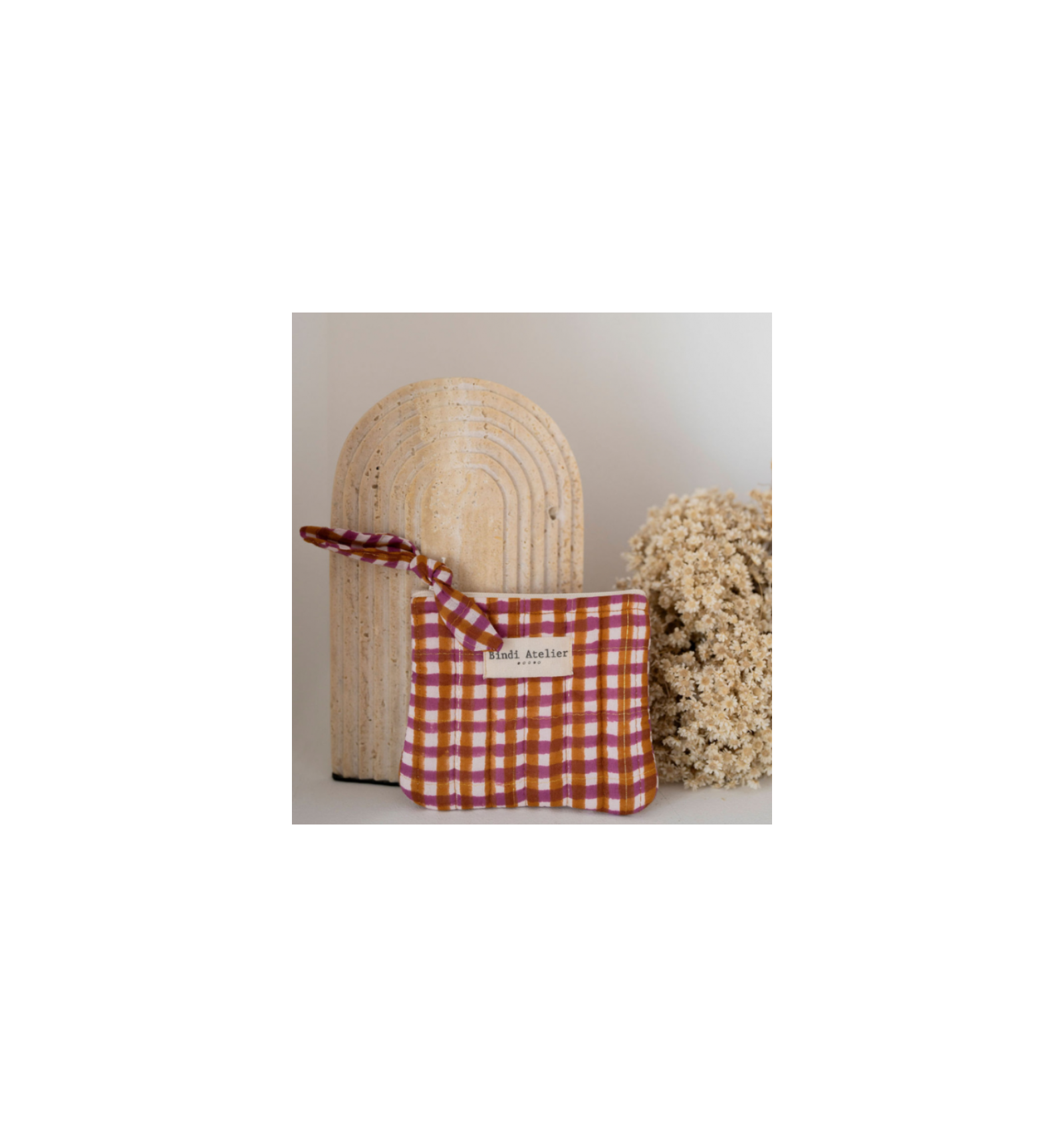 Avec son motif et sa fermeture éclair ornée d'un nœud imprimé, le porte-monnaie Bindi Atelier allie élégance et fonctionnalité.