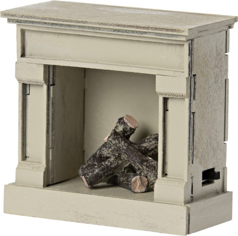 Une petite cheminée en bois pour aménager le salon de nos petites souris Maileg. L'âtre s'illumine comme par magie.