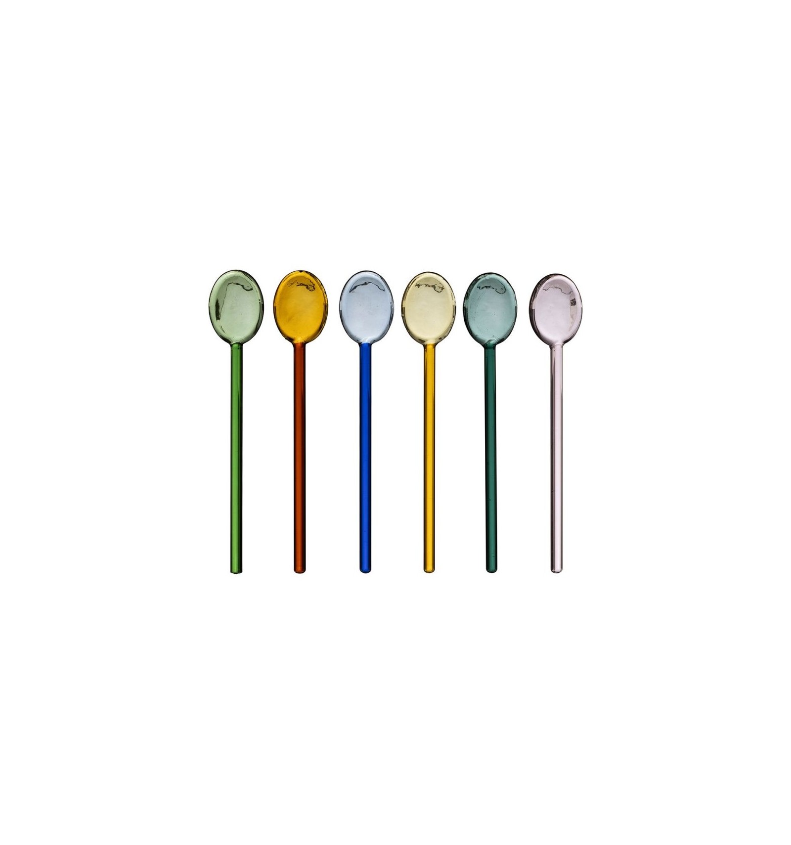 Ces cuillères/agitateurs sont fabriqués en verre borosilicate : un matériau reconnu pour sa résistance à la chaleur, sa durabilité, et sa neutralité au goût. Le design allongé et coloré en fait l'accessoire parfait pour mélanger un cocktail, un café glacé, un smoothie ou même une infusion.