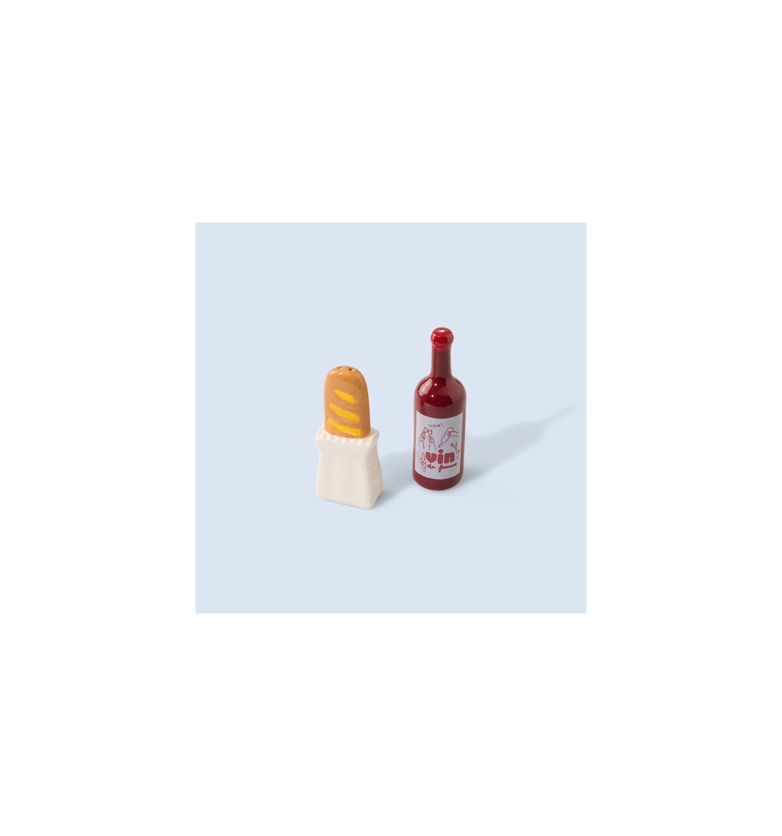 Ce set de salière et poivrière en forme baguette et bouteille de vin de la marque Fluid Market est parfait pour apporter une touche de couleur et d’originalité à votre table.