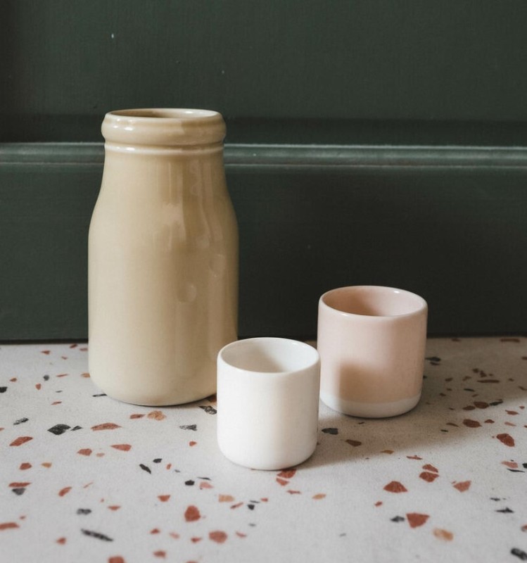 Gobelet coloris rose buvard fabriqué artisanalement par Jars Céramistes, céramiste dans la drôme depuis 1857 dont le savoir faire l'a hissé au rang des Entreprises Françaises du Patrimoine Vivant.