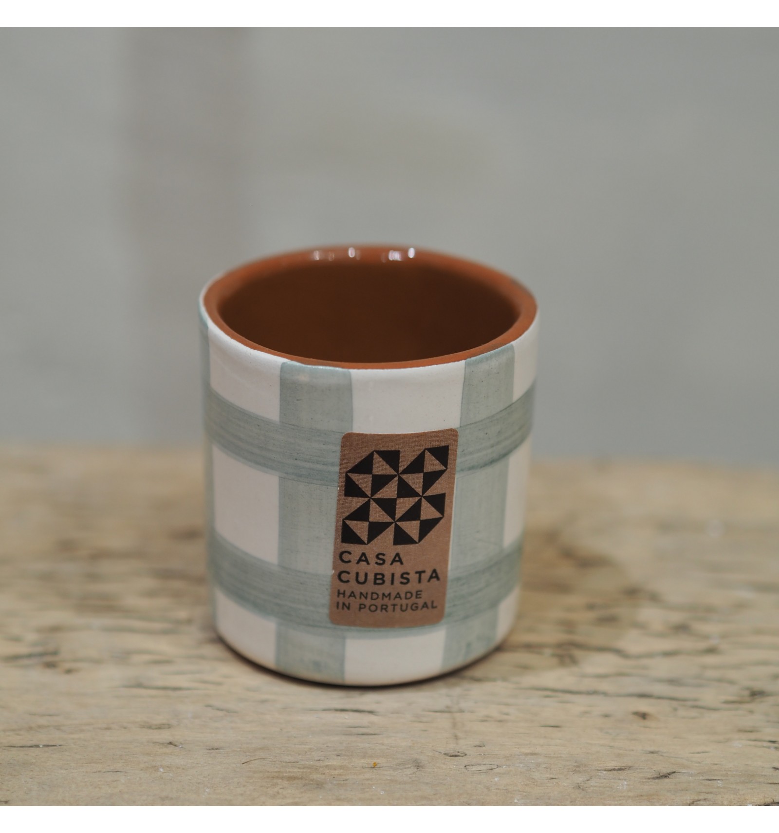 Tasse en céramique émaillée conçue pour accueillir votre café serré avec style. Entièrement fabriqué à la main au Portugal, ce modèle séduit par son motif quadrillé sauge sur fond crème et son esthétique épurée. Sa forme légèrement irrégulière et son toucher brut en font un objet à la fois authentique et contemporain, parfait pour compléter une collection de vaisselle artisanale ou offrir une touche design à votre pause-café.