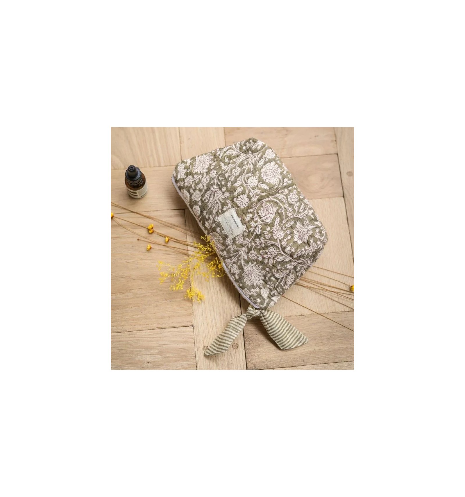 Petite trousse entièrement matelassée avec son tissu imprimé au block print : technique d’impression au tampon.