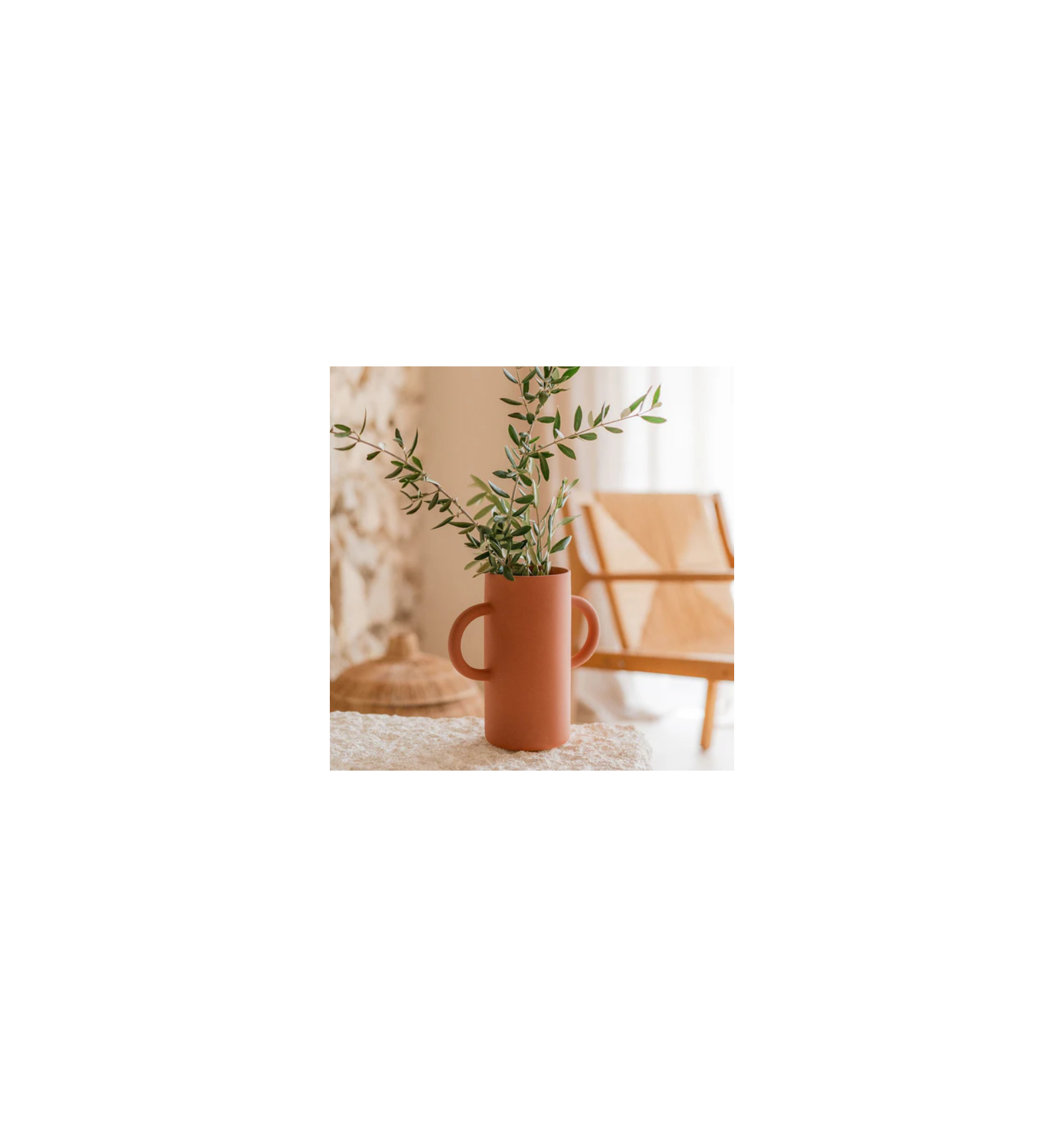 Ce vase se distingue par son style inspiré du sud, ses lignes simples et ses anses qui lui donnent un volume sculptural. Placé sur une étagère, une console ou une table, il devient un élément décoratif à la fois élégant et chaleureux.